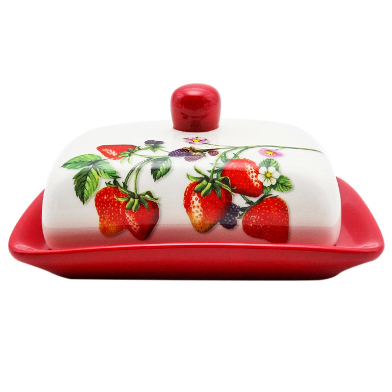 Масленка "Чудо-ягода" перекрасно подойдет для хранения и сервировки масла, сыра, творога. Изготовлена из доломита, крышка декорирована ягодным узором.
