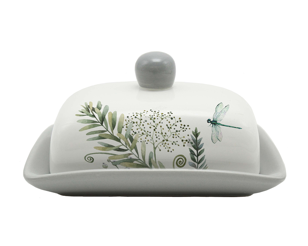 Масленка из доломита Prima Collection "Дикий папоротник" имеет оригинальную форму и рисунок дикого папоротника. Масленка выполнена из доломита, который не впитывает запахи и легко моется. Она вмещает 200 - 250 граммов масла, что делает её идеальным выбором для ежедневного использования на кухне. Крышка масленки открывается и закрывается удобно благодаря её ручке. Внутри масленки масло не портится, благодаря доломитной крошке, которая не впитывает запахов. После использования масленку легко мыть, она быстро сохнет. Масленка “Дикий папоротник” - это красивый и функциональный предмет для сервировки, который станет отличным подарком для тех, кто любит качественную кухонную утварь и эстетически привлекательные вещи.