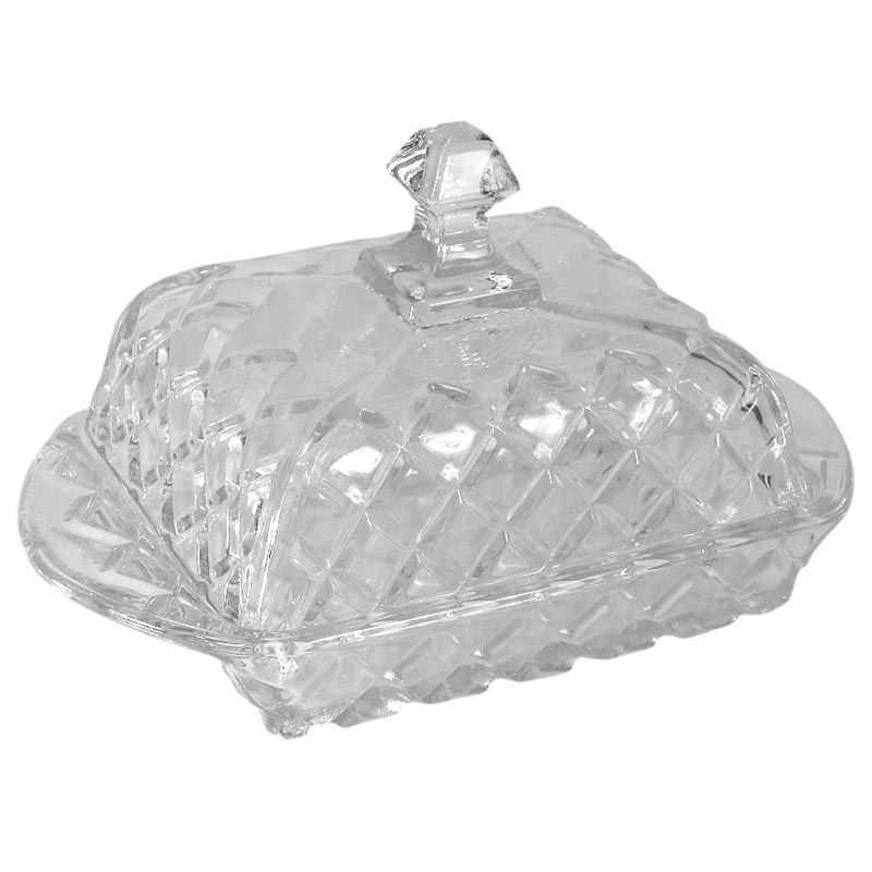 Масленка из иранского стекла с крышкой, прямоугольной формы, с рельефным рисунком.