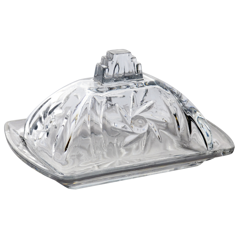 Масленка с крышкой. Изготовлена из качественного боросиликатного стекла, которое по своим характеристикам, блеску и игре света выглядит как всем любимый хрусталь. Идеальный вариант для сервировки стола.