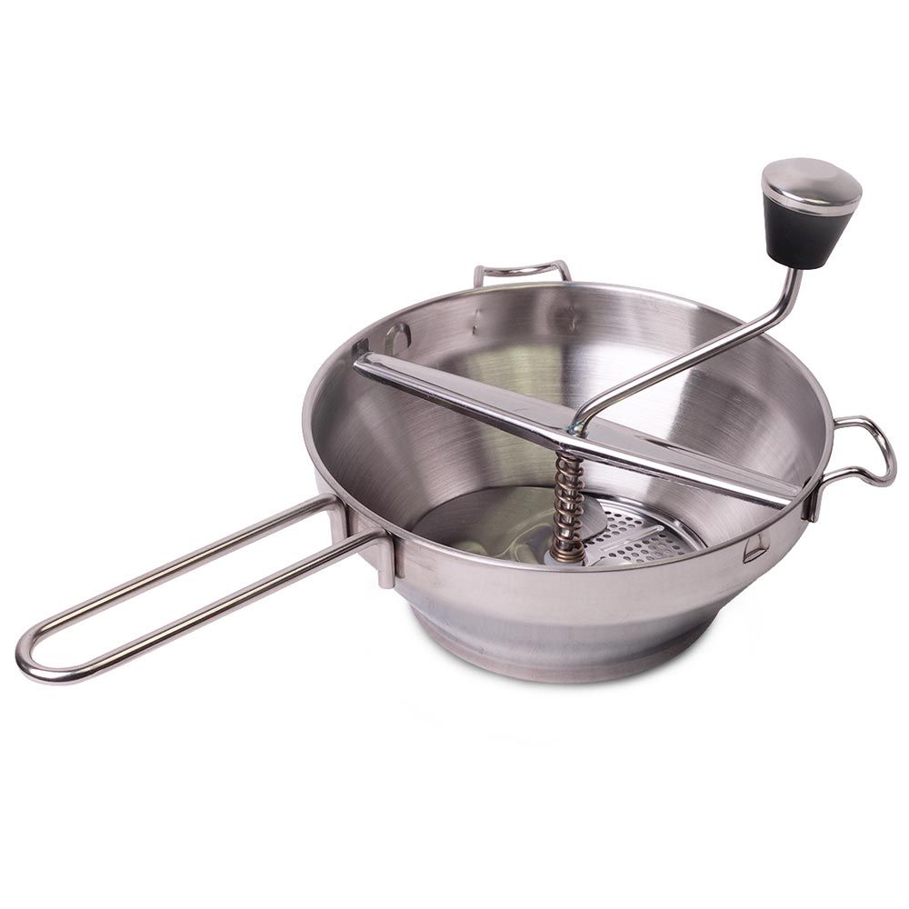 Многофункциональная мельница для пищи. Размер: длина: 33 см., высота: 9 см. Вес: 0, 54 кг В комплекта: 3 сменных сита. Материал: нержавеющая сталь. Мыть в посудомоечной машине: да. Упаковка. цветная картонная коробка