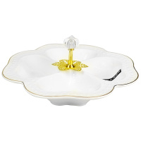 Менажница 23 см из эксклюзивной коллекции чайно-столовой посуды "Снежная королева". Посуду отличает лёгкость, белоснежный цвет, отводка с содержанием 10-ти процентного настоящего золота, оригинальность формы и рельефа. Узор "Снежинки", украшающий посуду, делает её уникальной и неповторимой.