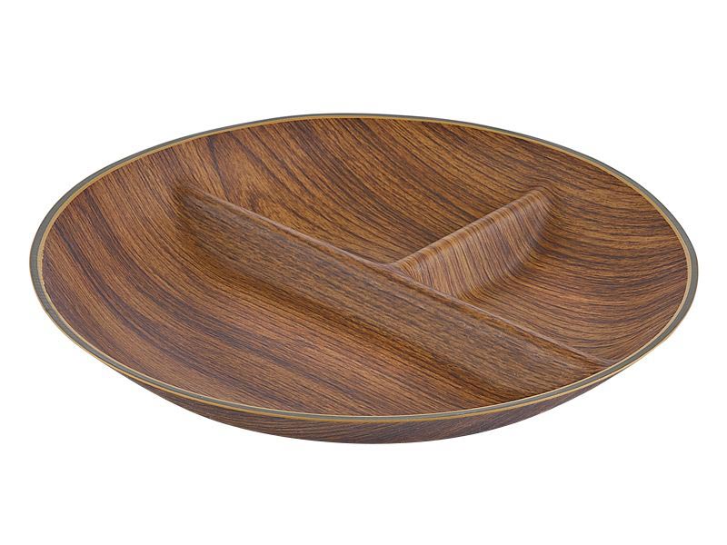 Менажница изготовлена из ударопрочного полистирола с имитацией дерева. Изделие имеет три отделения для блюд. Такая менажница украсит интерьер Вашей кухни, создавая неповторимую атмосферу уюта и комфорта, эстетичности и стиля.