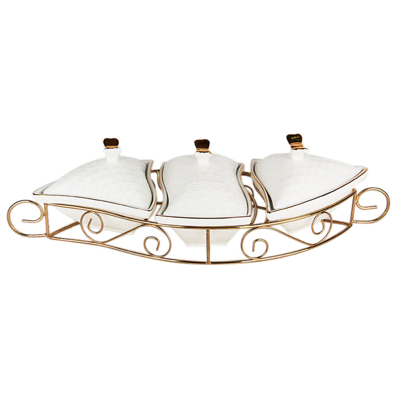 Посуду отличает лёгкость, молочно-белый цвет, отводка с содержанием 10-ти процентного настоящего золота, оригинальность формы и рельефа.