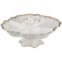 Менажница Lefard из серии Цветочная симфония изготовлена из фарфора с глазурованным покрытием. Изделие на ножке состоит из 4 секций, предназначенных для подачи сразу нескольких видов закусок, нарезок, соусов и варенья. Украшена керамической розой в центре.