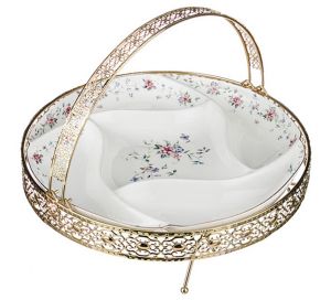 Менажница "Эдем" на металлической подставке подойдет для сервировки как праздничного, так и обеденного стола. Подобная посуда весьма функциональна, за что и пользуется неизменной популярностью среди хозяек.