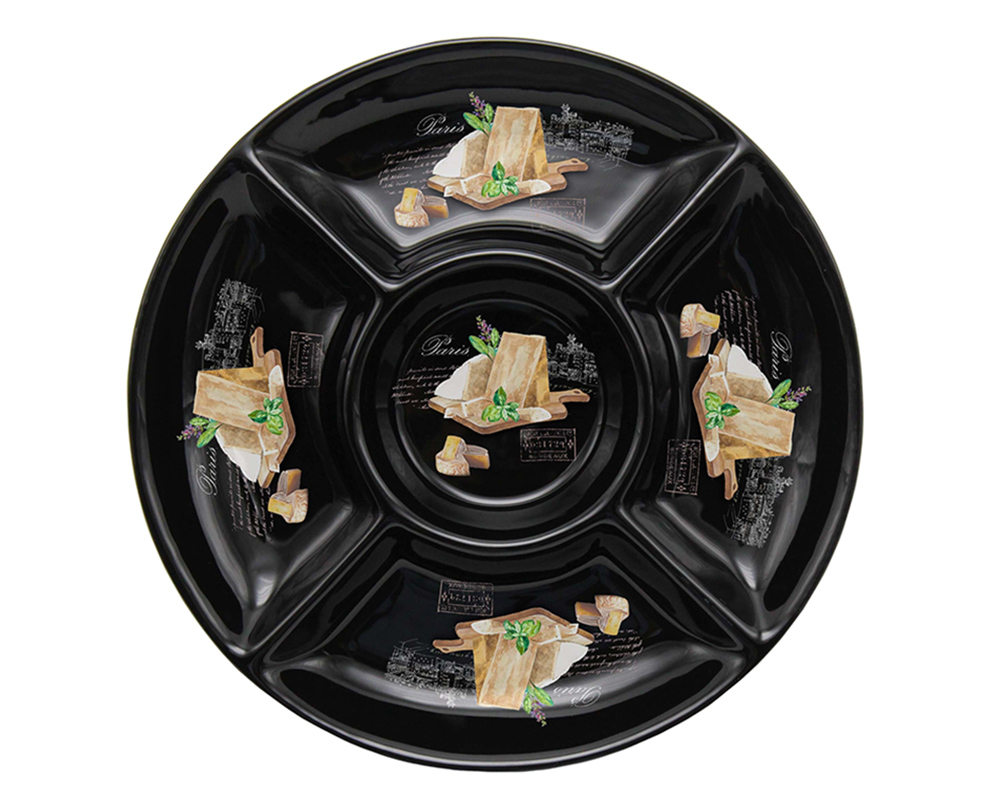 Менажница на 5 ячеек Prima Collection "Черный трюфель" имеет диаметр 26 сантиметров, что позволяет вместить на ней много различных продуктов. Она изготовлена из доломита - очень прочного и долговечного материала. Благодаря этому она прослужит вам долгое время и сохранит свой внешний вид. Ячейки менажницы имеют оригинальный дизайн с рисунком грибов. Это создает на кухне неповторимую атмосферу и делает ее более уютной. Эту менажницу легко мыть, она не требует особого ухода и быстро сохнет после мытья. Она станет прекрасным подарком для любителей готовить и украсит любую кухню.