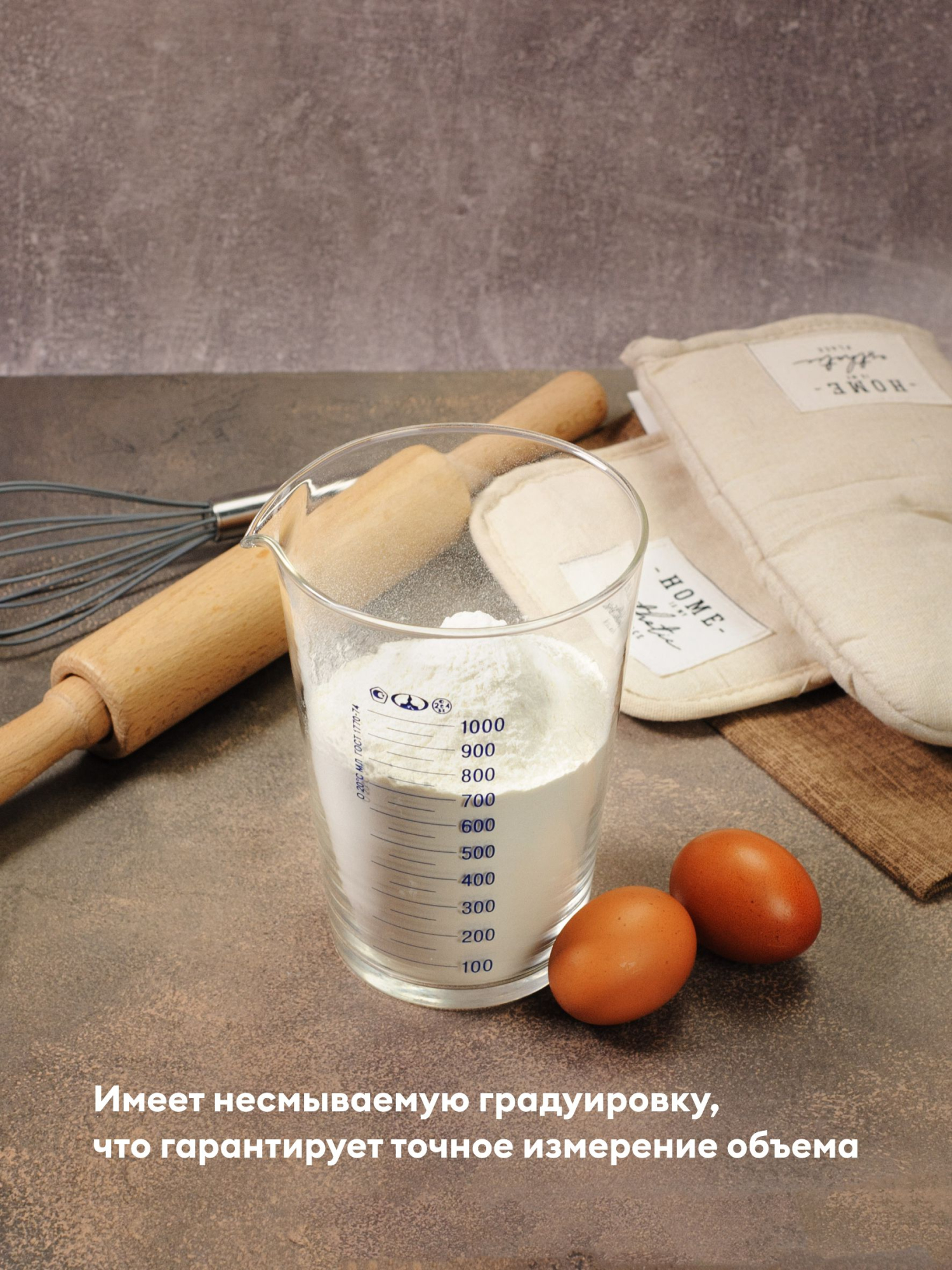 Мерный стакан объемом 1000мл из прочного стекла станет незаменимым помощником на вашей кухне. Прозрачный материал позволяет легко контролировать количество жидкости, а точная шкала с делениями в миллилитрах обеспечит точность в приготовлении блюд и коктейлей. Этот стакан идеально подходит для измерения ингредиентов при выпечке, приготовлении напитков или для повседневных нужд на кухне. Его простая и практичная конструкция делает его удобным в использовании и хранении.