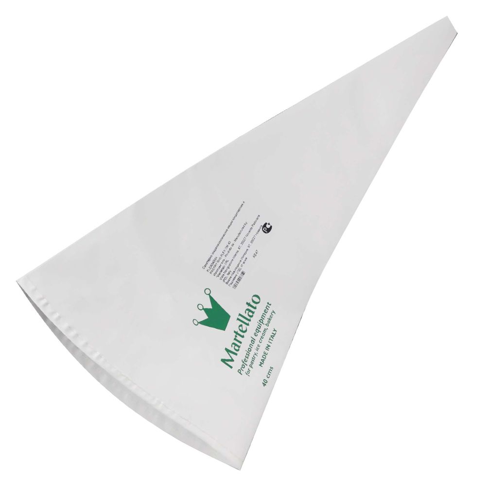 Кондитерский мешок покрыт экстра легким полиуретаном, со спаянным швом, верхним швом и вешалкой.