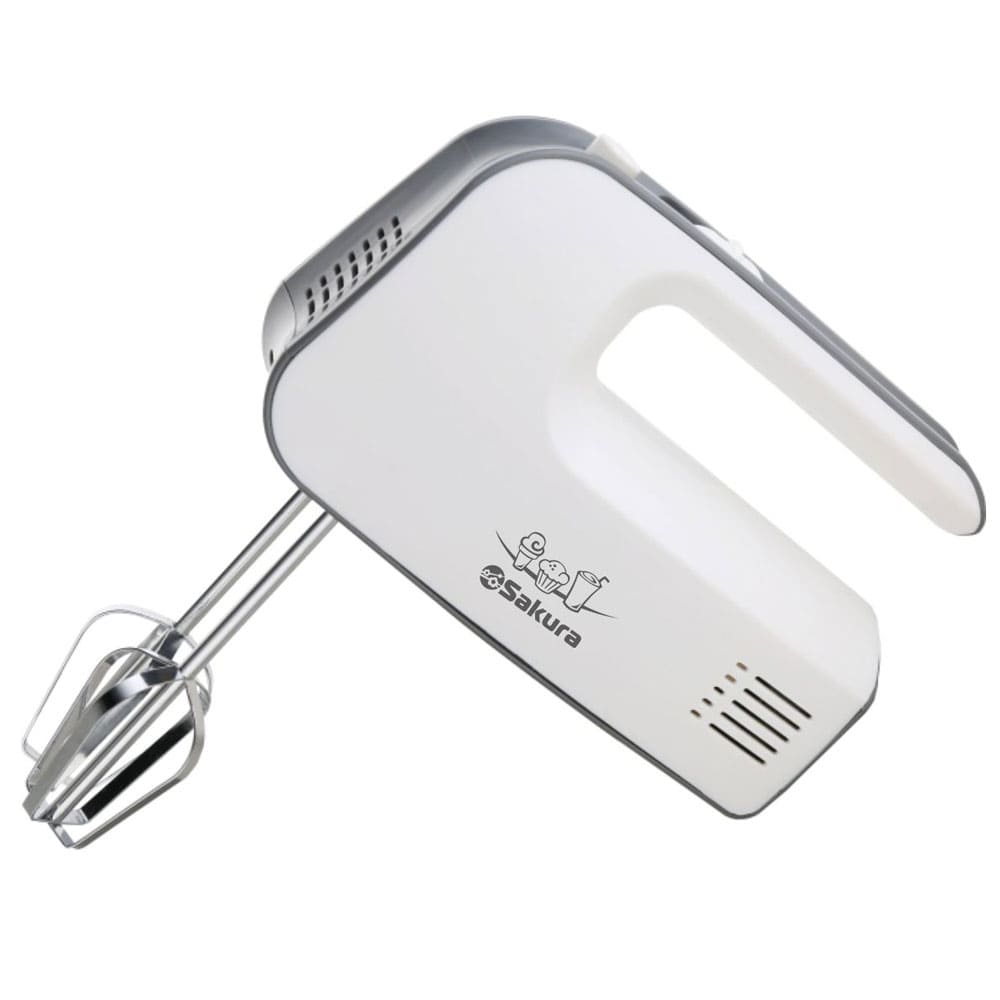 Небольшой миксер Sakura SA-6322WG предназначен для бытового использования, в комплекте 2 вида насадок (для взбивания и теста).