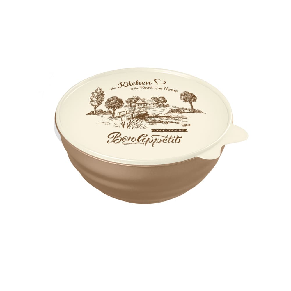 За большую ручку удобно открывать и снимать гибкую крышку. После приготовления блюда его можно закрыть крышкой и убрать в холодильник, не перекладывая в специальную емкость. Крышка не даст блюду впитать посторонние запахи. На крышку нанесён сочный декор с помощью технологии IML - такой декор не сотрётся и не смоется.
