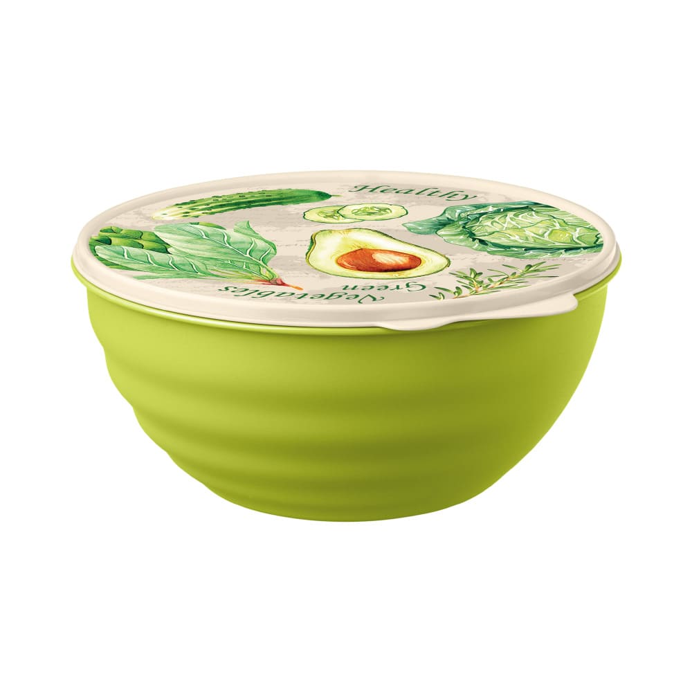 За большую ручку удобно открывать и снимать гибкую крышку. После приготовления блюда его можно закрыть крышкой и убрать в холодильник, не перекладывая в специальную емкость. Крышка не даст блюду впитать посторонние запахи. На крышку нанесён сочный декор с помощью технологии IML - такой декор не сотрётся и не смоется.