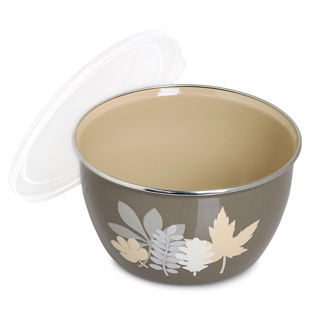 Миска из эмалированной стали с пластиковой крышкой. Миску можно использовать в качестве кастрюли для приготовления пищи на всех видах плит и духовке без платиковой крышки. Вмете с пластиквой крышкой миску можно использовать для хранения. Стильный дизайн деколи будет радовать Вас и Ваших близких и подойдет к любому интерьеру кухни.