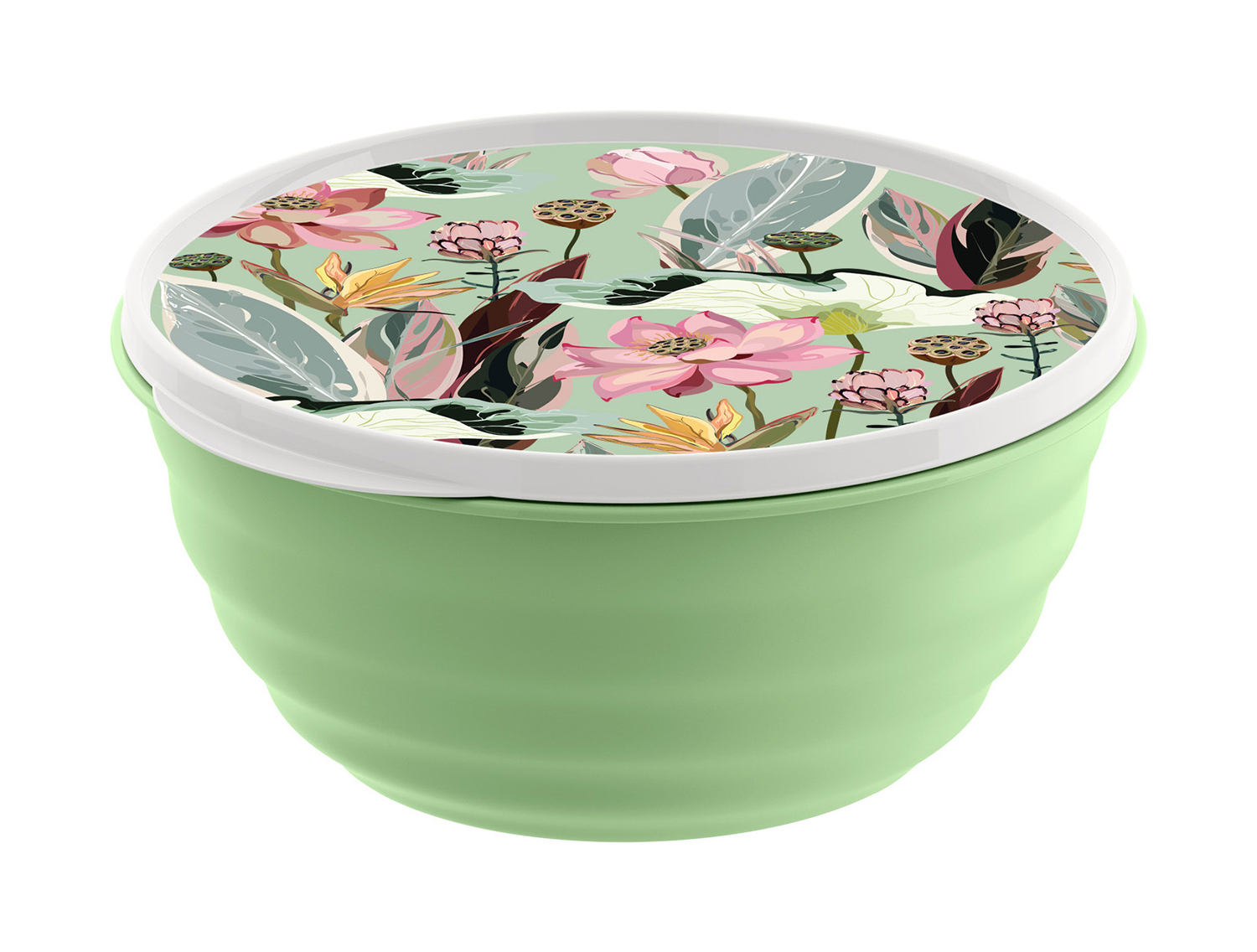 Миска с крышкой Latina объёмом 2,1л из коллекции Botanica от IDILAND предназначена для приготовления, сервировки, хранения и транспортировки не жидких блюд. Миска оснащена плотно садящейся крышкой с удобной широко ручкой. Миски изготовлены из безопасного перерабатываемого пищевого полипропилена, не содержит бисфенола А. IML-декор на крышке вплавляется в изделие на этапе литья, поэтому он не стирается и долго радует глаз. Миски удобно вкладываются друг в друга и формируют комплект с оптимальными объёмами ёмкостей. Температурный режим: от -5 до +75. Изделия с декором не рекомендуется мыть в посудомоечной машине.