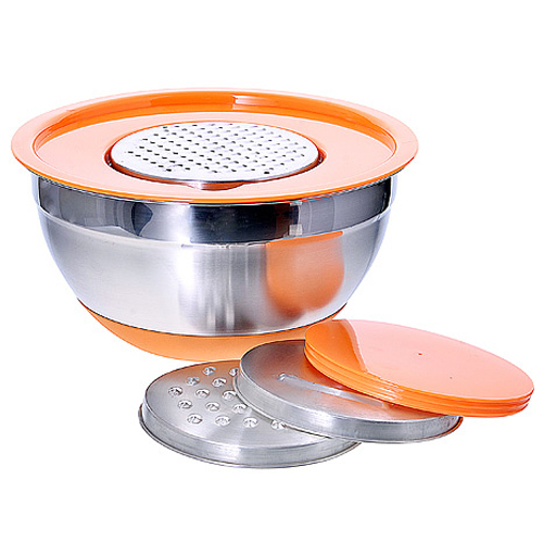 Универсальная миска с крышкой и 3-мя терками Mayer&Boch, объемом 2,5 литра, станет настоящей помощницей на кухне. Подходит для взбивания миксером и венчиком через отверстие в крышке, а также для шинковки продуктов прямо в миску.