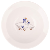 Миска изготовлена из фарфора, имеет гладкий край и декорирована рисунком Гуси (новые).