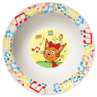 Миска с героями замечательного мультсериала "Три кота" отлично подойдет в качестве первой "взрослой" посуды малыша.
