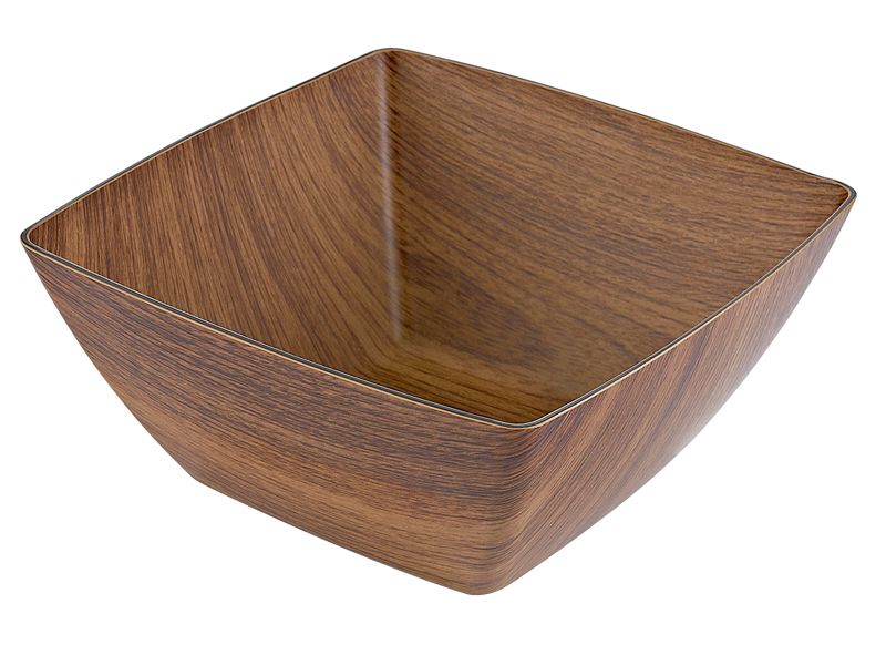 Миска квадратной формы изготовлена из ударопрочного полистирола с имитацией дерева.