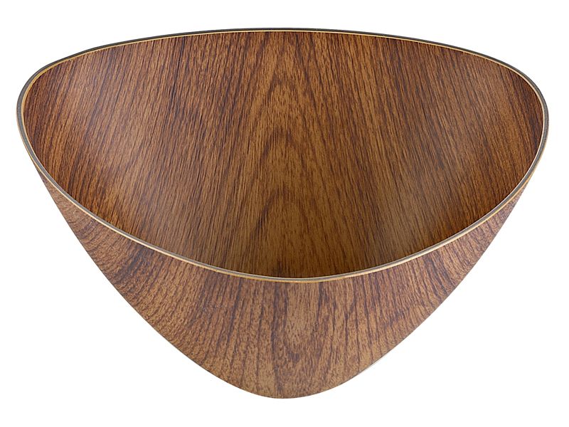 Миска треугольной формы изготовлена из ударопрочного полистирола с имитацией дерева.