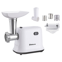 Мясорубка Sakura SA-6420STW оптимальна для эксплуатации в домашних условиях. Модель оборудована ножом из нержавеющей стали и металлическим шнеком. Это обеспечивает быстрое и однородное измельчение мяса, рыбы и овощей. Благодаря сменным насадкам можно натирать и шинковать морковь, свеклу, огурцы или томаты. Это способствует комфортному использованию и значительно упрощает процесс домашнего консервирования. Функция «Реверс» позволяет освободить шнек от намотавшихся пленок и жил, не разбирая корпус.
