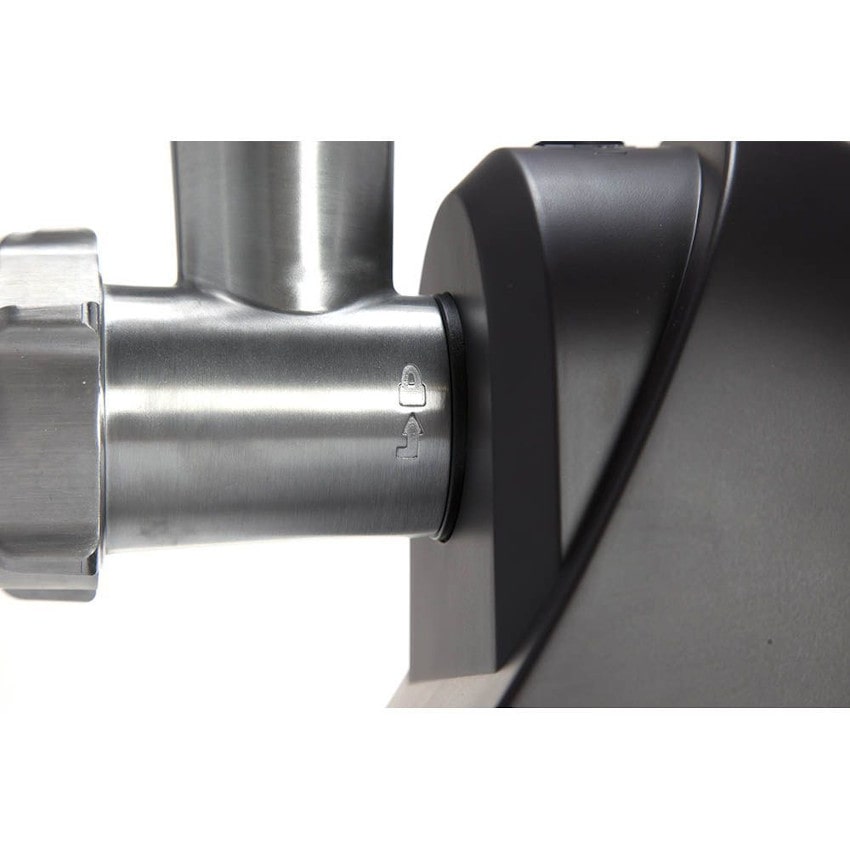 • В комплекте: 2 сетки из высококачественной стали (5 мм, 7 мм); мясоприемник из высококачественного пластика; пластиковый толкатель.