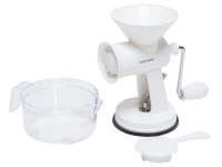 Перед началом использования закрепите мясорубку на ровной поверхности, опустив рычаг на подставке мясорубки. Использование: Зафиксируйте корпус мясорубки одной рукой, другой рукой поворачивайте рукоятку по часовой стрелке. Мясорубка позволяет переработать свежее мясо и овощи.