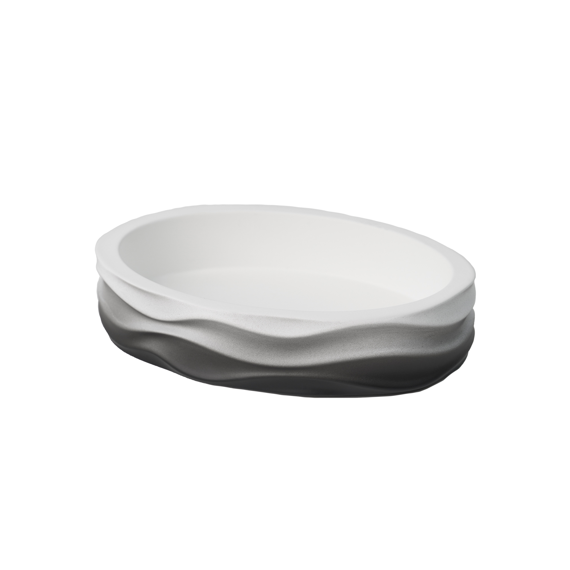 Изготовленная из высококачественного полирезина, мыльница MIST сочетает в себе прочность и изысканность. Её минималистичный дизайн и волнообразная форма создают ощущение лёгкости и гармонии, а градиентный переход от белого к темно-серому цвету добавляет аксессуару изысканности и уникальности.