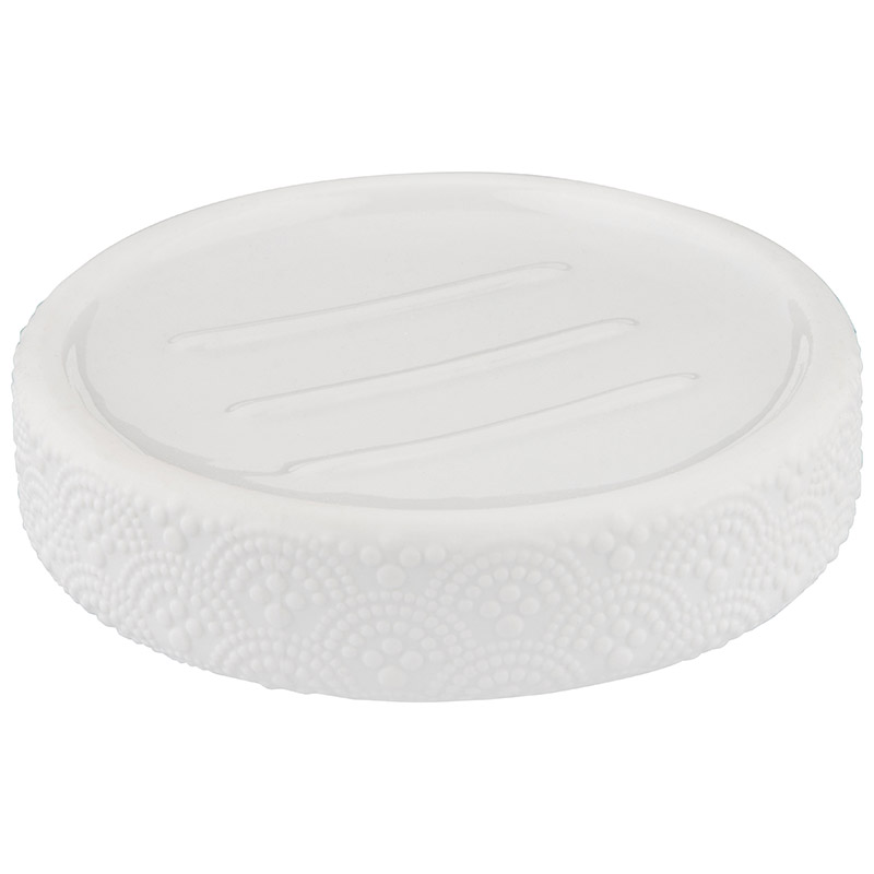 Керамическая мыльница станет прекрасным украшением Вашей ванной комнаты. Данный аксессуар выполнен в классическом белом цвете с декоративным элементом в виде ромбов. Приятная округлая форма выглядит интересно и привлекательно. Аксессуар для ванной комнаты изготовлен из керамики, материала, устойчивого к внешним воздействиям, таким как высокая температура, истирание, агрессивная среда. Мыльница легко моется и не впитывает влагу, не скользит по санфаянсу раковины и другим поверхностям. Благодаря всем этим свойствам белая подставка под мыло со временем не потеряет свой внешний вид и будет радовать глаз долгое время.