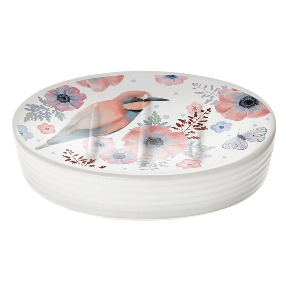 Мыльница "Нежность" - это изящное изделие, выполненное из белоснежной керамики, она декорирована растительным орнаментом в пастельных тонах. Изделие не боится воды, легко чистится и сушится.