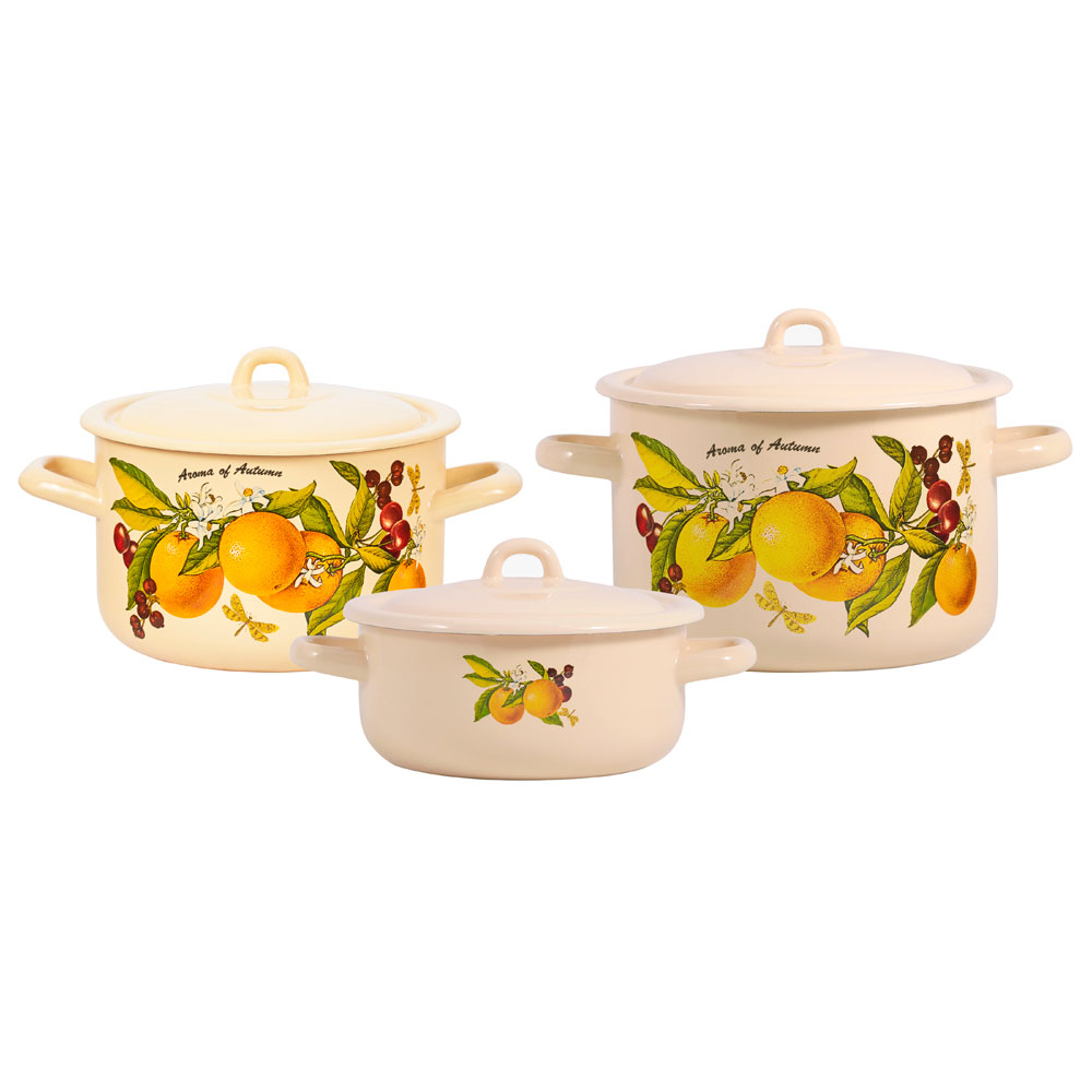 Набор эмалированных кастрюль №001 с рисунком "Фруктовая фантазия":
