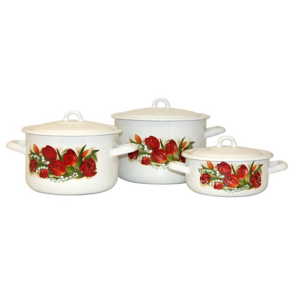 Набор эмалированных кастрюль №001 с рисунком "Ласковый май".