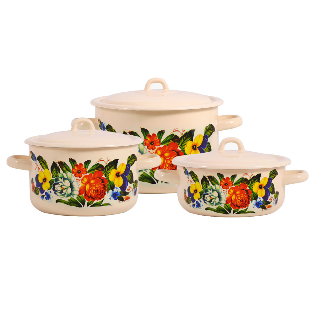 Набор эмалированных кастрюль №001 с рисунком "Фруктовая фантазия":