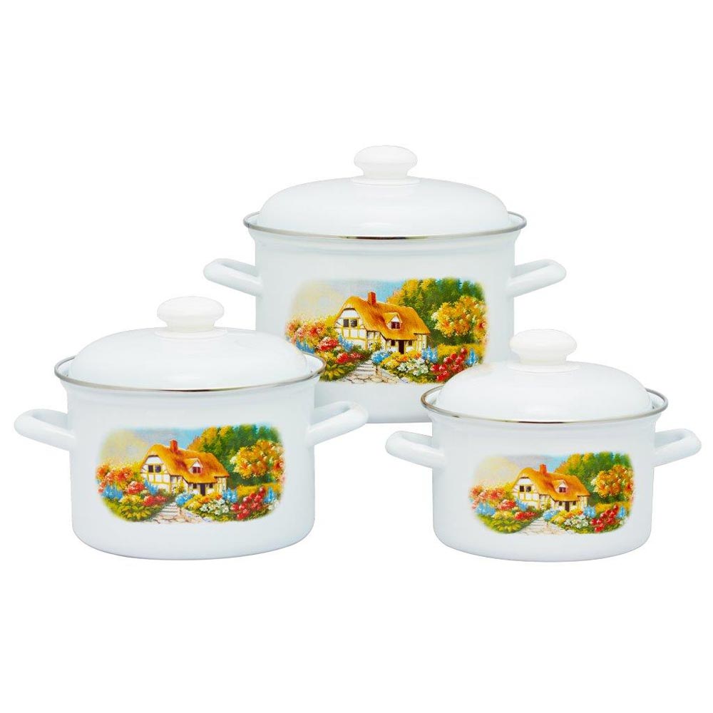 Набор цилиндрических эмалированых кастрюль 2,0л; 3,0л; 4,5л.