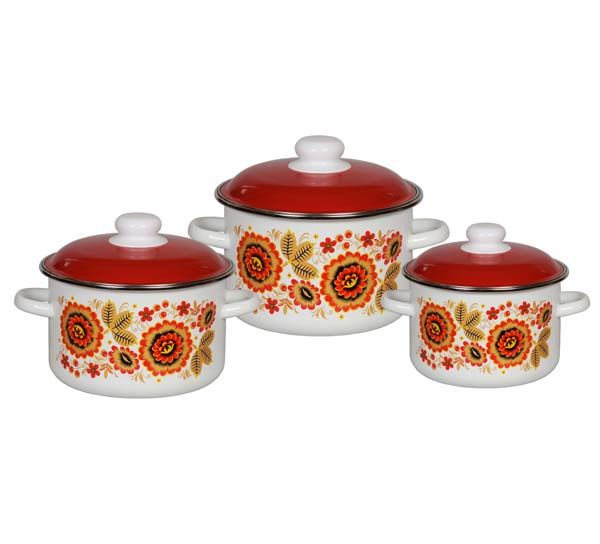 Набор эмалированных кастрюль №02 "Хохлома" цилиндрической формы: