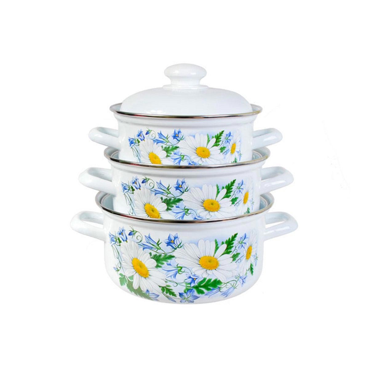Набор эмалированных кастрюль №124-4 "Ромашковое поле".