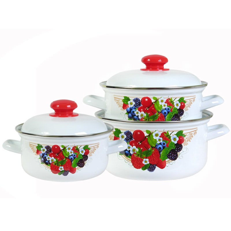 Набор эмалированных кастрюль "Ягодный микс" №124-4 (1,5л, 2л, 3л) цилиндрической формы от бренда Лысьвенские эмали.