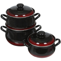 Набор эмалированной посуды "Южанка" состоит из трех кастрюль разного объема с крышками.