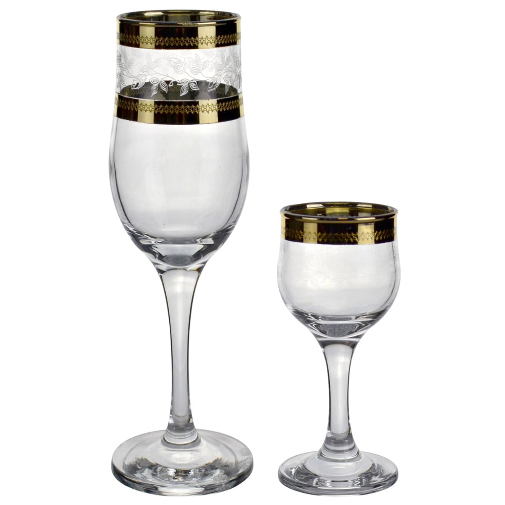 Набор Гусь-Хрустальный "Лоза" состоит из 6 бокалов и 6 рюмок на длинных ножках, изготовленных из высококачественного натрий-кальций-силикатного стекла.