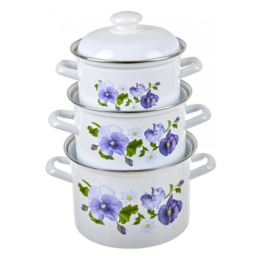 Набор эмалированных кастрюль "Анютины глазки" состоит из 3 кастрюль разного объема: