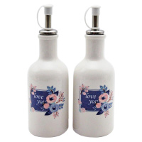 Бутылки из набора для масла и уксуса "Моя любовь" оснащены специальными металлическими дозаторами, которые позволят добавить точное количество масла или уксуса. Бутылки декорированы цветочным принтом и надписью.