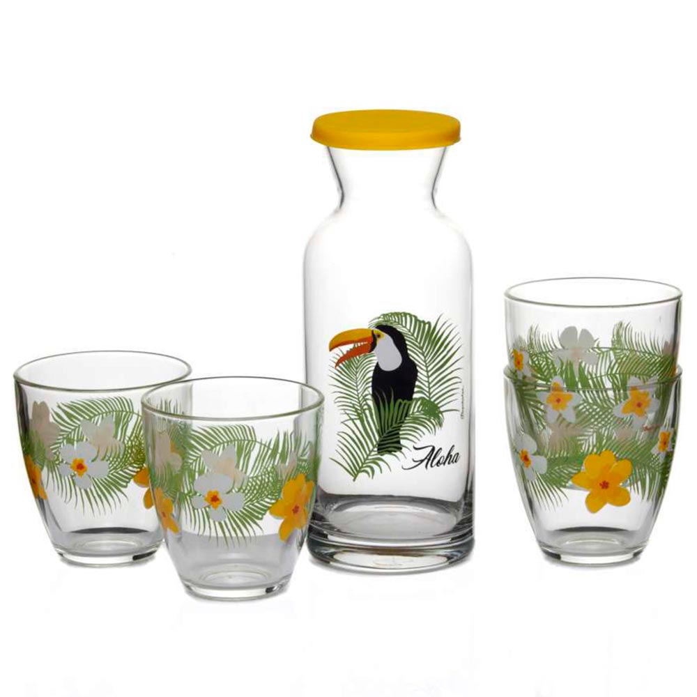 Набор посуды для питья Pasabahce "Джангл тукан" состоит из 5 предметов: графина-декантера и стаканов.