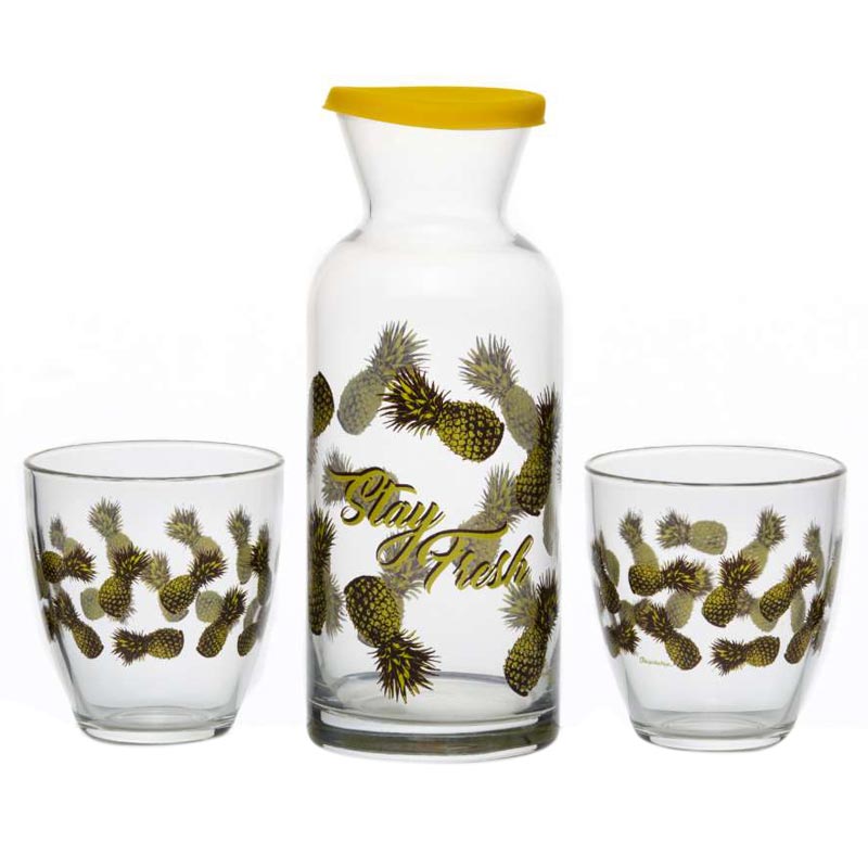 Набор посуды для питья Pasabahce "Джангл ананас" состоит из 5 предметов: графина-декантера и стаканов.