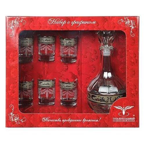 Набор из 6 стопок и графина "Русский узор" производства Гусь-Хрустальный выполнен из высококачественного натрий-кальций-силикатного стекла.