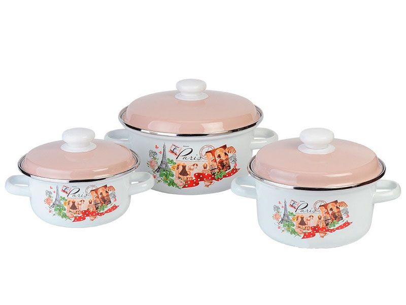 Набор эмалированных кастрюль "Черешня" конической формы производства "Новомосковской посуды"