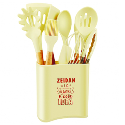 Набор кухонных аксессуаров ZEIDAN Z-2070 11 предметов, из высококачественного силикона и дерева (лопатка с прорезями - 32 см, ложка с прорезями - 31,5 см, ложка для спагетти - 31,5 см, лопатка - 32 см, ложка поварская - 31,5 см, половник - 31,5 см,кисть -27 см, венчик для взбивания - 25,5 см, лопатка - 21,2 см, щипцы - 27 см, подставка из пластика). Подарочная упаковка с пластиковой ручкой.