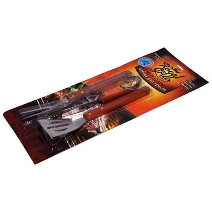 Набор аксессуаров для гриля "RoyalGrill" состоит из 3х предметов: вилка, лопатка, щипцы. Аксессуары изготовлены из прочной нержавеющей стали толщиной 1,5 мм, а рукоятки выполнены из дерева с красным оттенком.