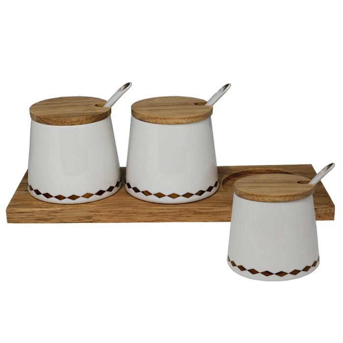 Серия Tekito изготовлена из высококачественного фарфора и представлена в двух цветах (черный и белый). Каждое изделие украшено по периметру узором из золотых ромбов. Отлично сочетаются друг с другом.