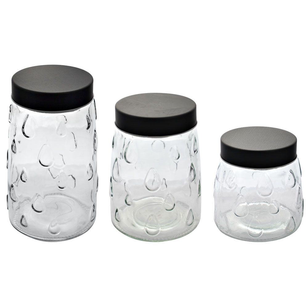Набор банок выполнен из высококачественного стекла и украшенная красивым рельефным узором, каждая банка оснащена плотно закрывающейся крышкой.