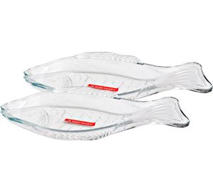 Набор из двух блюд для рыбы, выполненный из высококачественного стекла, оригинально украсит праздничный стол и поможет красиво расположить рыбную закуску или горячее рыбное блюдо.