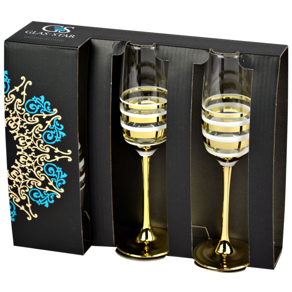 Набор бокалов для шампанского Line Gold от бренда Glasstar выполнены в изысканном, современном стиле. Бокалы сочетают в себе функциональность и эксклюзивный дизайн. Они станут украшением на праздничном столе и будут отличным подарком к любому торжеству. Эти предметы передают характерные черты нового стиля декора: функциональность, красота и оригинальность.